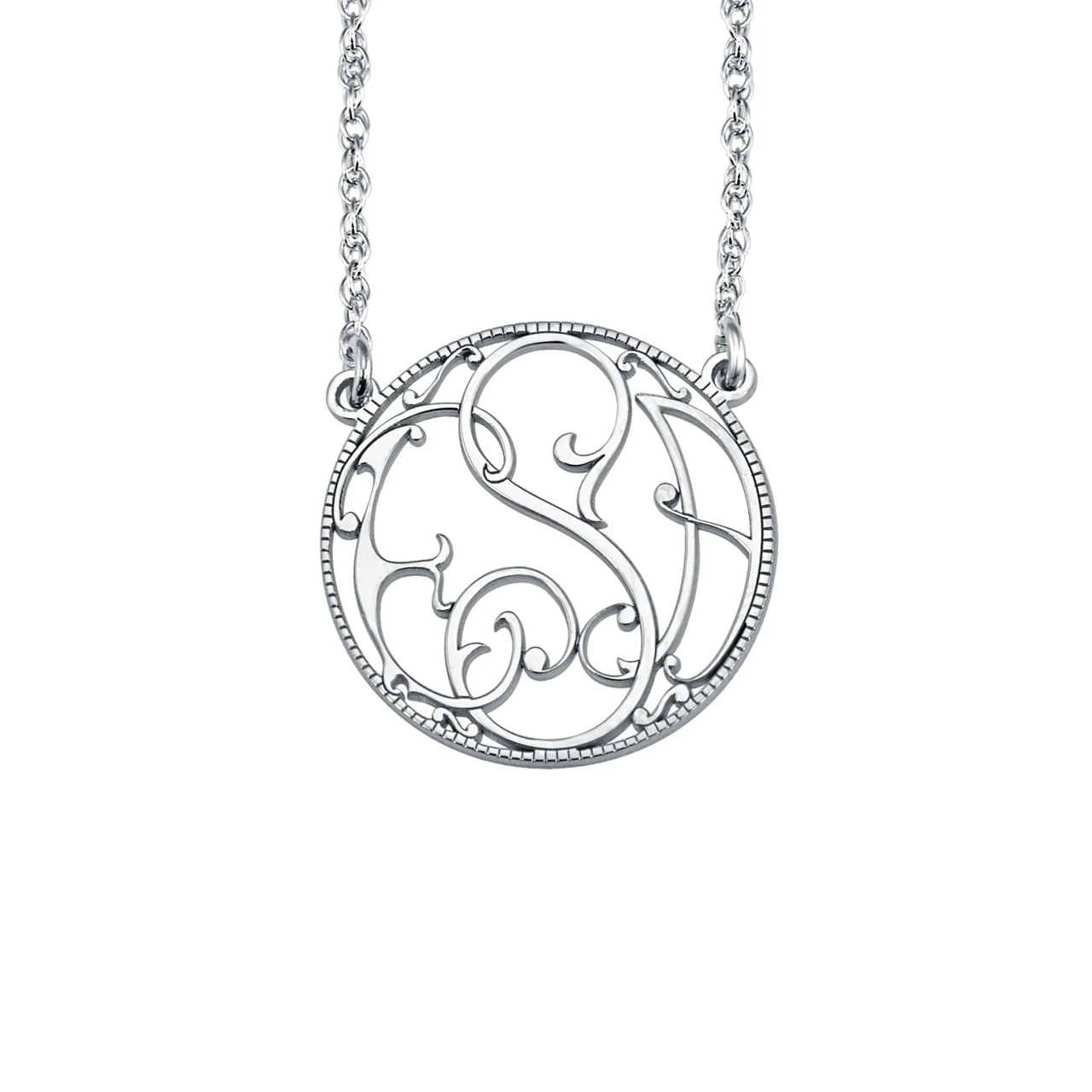Fink's 20mm Circular Rope-Bordered Monogram Necklace