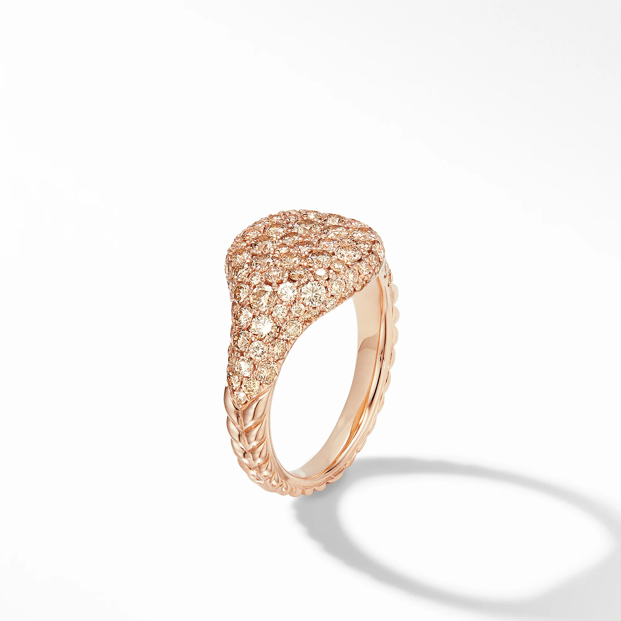 Mini Chevron Pinky Ring in 18K Rose Gold with Pavé Cognac Diamonds, Size 4