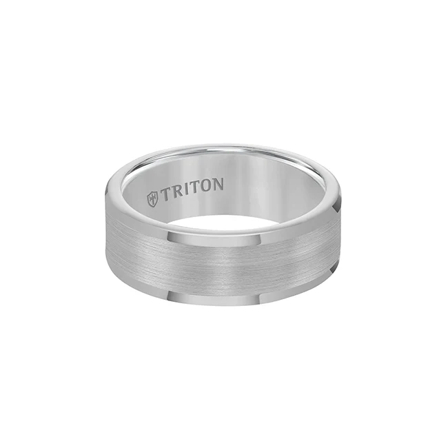 Triton men's comfort fit wedding band in grey tungsten carbide. Measures 8mm wide.